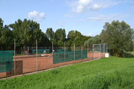 Die Tennisanlage der Tennisabteilung der SKG Stockstadt liegt mitten im grünen Areal der Stadt Stockstadt am Rhein. Hinter dem Damm befindet sich in Sichtweite das neue Fußballstadion der SKG Stockstadt.